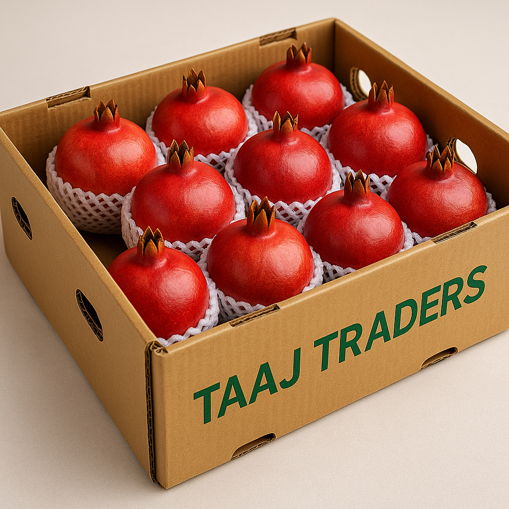 Deep red arils, thick skin, long shelf life — export-friendly.